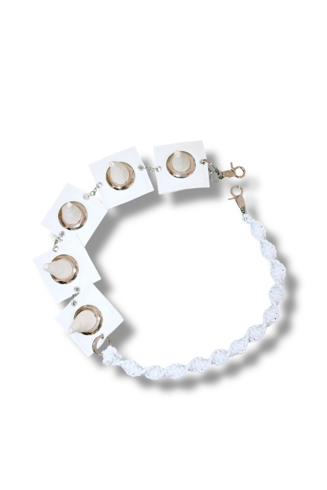 ⚫︎商品名 Twist Spike Wallet Chain -Black ⚫︎size: 全長 80cm ⚫︎カラー: White ⚫︎商品説明 凛とした白が、棘のデザインに静かな強さを与える、Twist Spike Wallet Chain - White。 このアイテムは、シンプルさの中にも存在感を放ち、あなたのスタイルに洗練されたアクセントをプラスします。 スパイラルに編まれたコードと無機質なレザー&メタルの組み合わせが、独特の雰囲気を生み出しています。ほんの少しの違和感が、美しさを際立たせ、見る人を惹きつける魅力があります。 カジュアルなデニムスタイルはもちろん、シンプルなトップスにも良く合い、様々なコーディネートにフィットします。 スパイクのデザインは、洗練されたエッジを演出し、あなたの個性を引き立てます。 どんなコーディネートにも馴染みつつ、さりげなく主張するスタイル。 ⚫︎お取り扱いについて より長くご愛用いただくために、汚れた場合はやわらかい布で拭き取ることをお勧めいたします。強い力で引っ張ったり、無理に曲げたりしないようにご注意ください。 ⚫︎発送について @isecai_official の商品はすべて受注生産のため、発送までに1週間から最長3週間ほどお時間を頂戴しております。お待たせしてしまい恐縮ですが、何卒ご理解賜りますようお願い申し上げます。